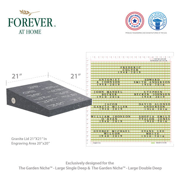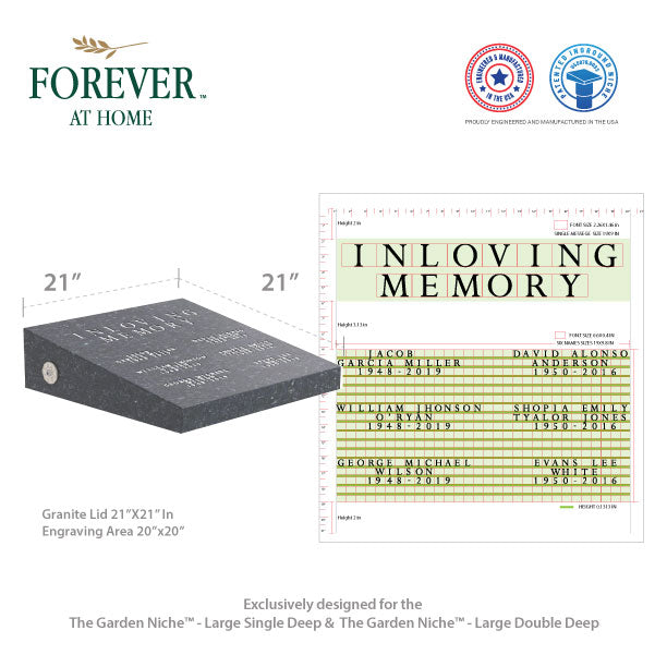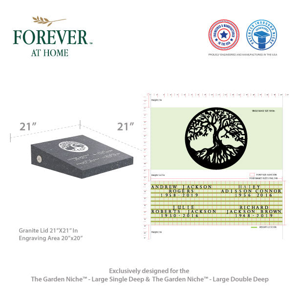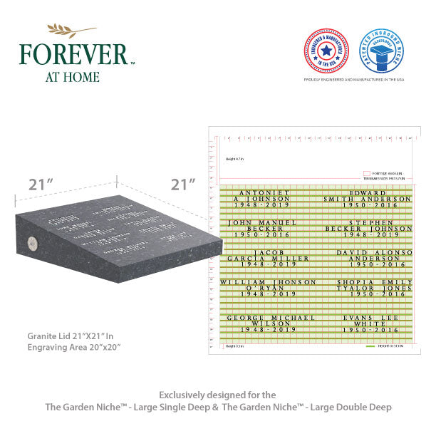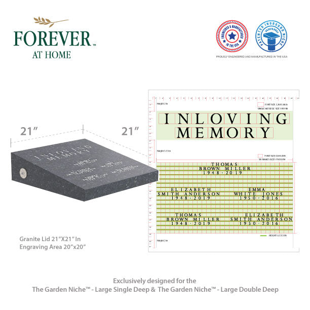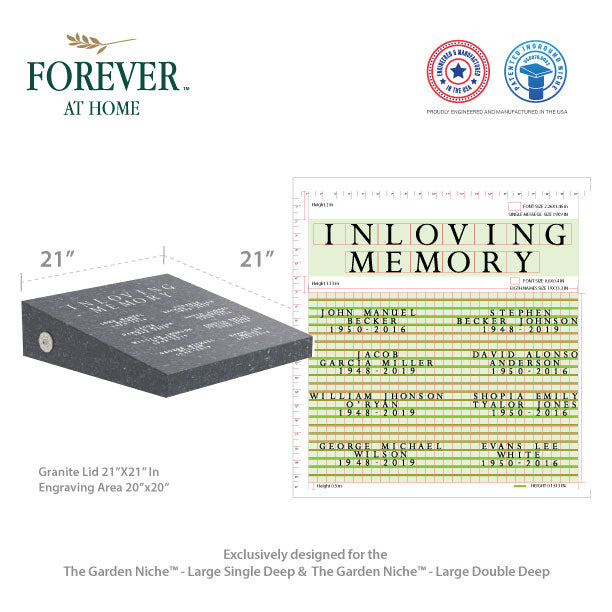 The In-Ground Niche is our patented, weatherproof memorial designed to safeguard your loved one’s ashes on your personal property, offering a private alternative to cemetery and church placements or urn burials.